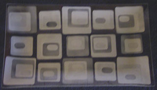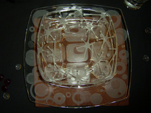 Retro place setting Circles dinner plate 10" sq. $45.00 Squares serving platter 12" x 24" &120.00 The complete Retro line is available at the Retro Inferno on the corner of Truman and Grand in Kansas City, MO. Store Hours are 11am - 7pm Mon. thru Friday, and Saturdays 10 to 5. |